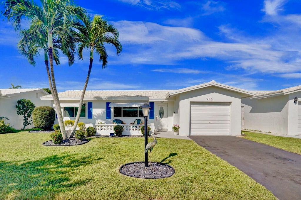 Welcome home to this beautiful, fully remodeled home in the 55+ community of Palm Beach Leisureville. This gorgeous home is like walking into a model and has a 2021 roof and all impact windows! The home has two large bedrooms, two bathrooms, two large living spaces and an open kitchen. The entire home has fresh, modern colored paint and large tile floors in the main living area and vinyl floors in the bedrooms. The kitchen has been completely updated with shaker cabinets, granite countertops and stainless steel appliances! Both bathrooms have been completely upgraded to modern style with beautiful vanities, tile and fixtures. In addition to the aesthetic upgrades, the home has a 2021 roof, 2021 impact windows/front door, 2022 AC, 2020 water heater, and 2022 electrical panel!