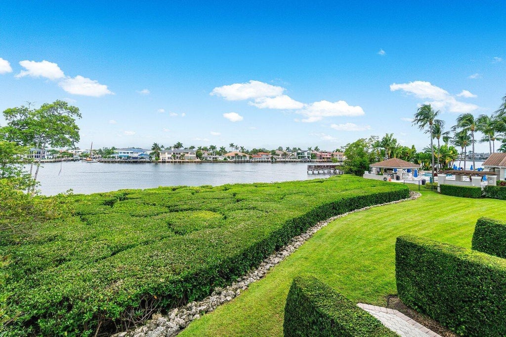 !DIRECT INTRACOASTAL VIEWS! from this totally renovated 2 BR, 2.5 BA with 1 car attached garage, end unit townhome in fabulous Highland Beach. 3 Patios! This contemporary masterpiece is designed to satisfy your fussiest clients. Marble floors, quartz waterfall counters, custom quartzite TV wall, built-ins and custom wall decor in bedrooms. Water views from 1st floor and 2nd floor primary bedroom covered patio. Bonus huge 3rd patio (10' x 23') for even more outdoor entertainment! Extra side windows (and no side neighbor) because this is an end unit. 9' ceilings 1st floor, vaulted ceilings on 2nd floor. Newer roof and all impact windows and doors. Pet friendly, reasonable association fee includes cable, internet and water. Can rent right away. Tropical and resort like pool on the intracoas