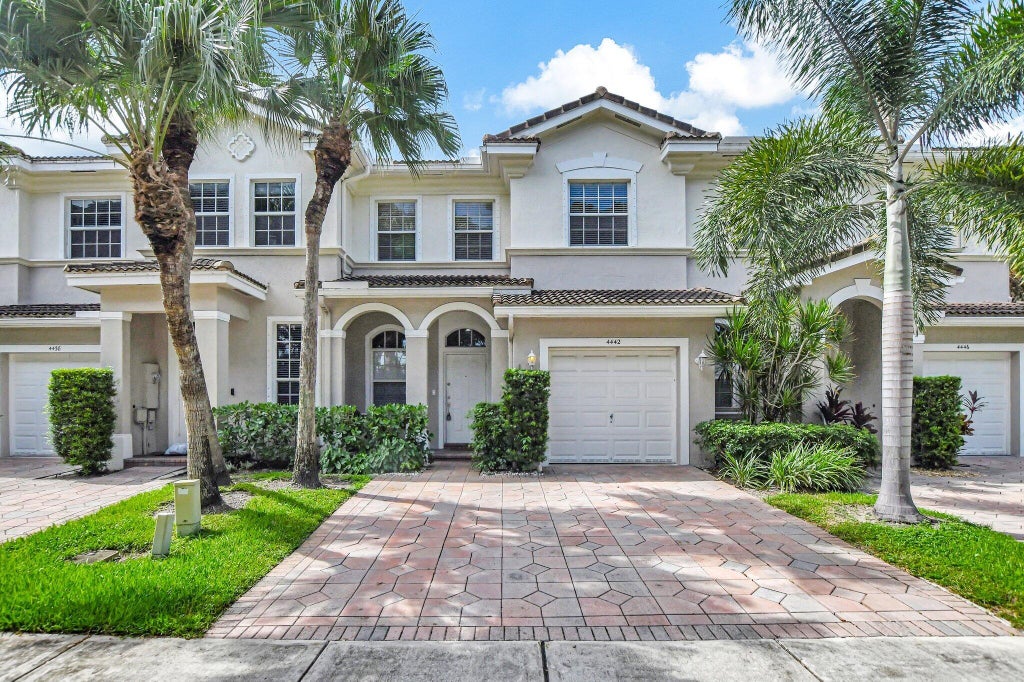 Welcome to your new home, just minutes from downtown Delray and the beach! This 3 bedroom, 2.5 bathroom townhouse with garage is freshly painted throughout, with brand new flooring just installed! The kitchen offers stainless steel appliances, island with sink & seating, and open layout to the dining area. Living room has sliding glass door to your private, screened patio. Upstairs you'll find the primary bedroom with en-suite bathroom featuring double-sink vanity, soaking tub and shower - plus two additional bedrooms and guest bathroom. Full size washer and dryer in unit. Tenant pays all utilities. Community offers heated pool, basketball court, and playground. Close to I-95 and the Turnpike. HOA requires 650 credit score. Small pets welcome: limit 2, combined 30 lbs.
