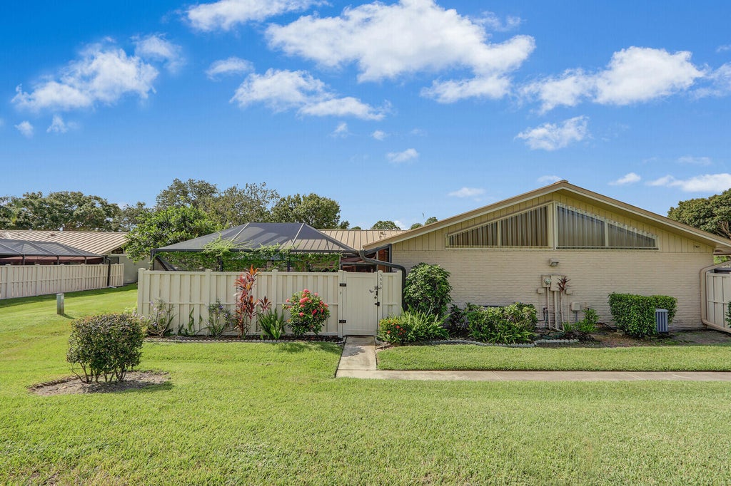 Welcome to 5658 Golden Eagle Circle, a beautifully updated 3-bedroom townhome in the desirable Westwood Gardens of Palm Beach Gardens. This home features light grey cabinetry, quartz countertops, custom backsplash, recessed lighting and 2023 stainless steel appliances in the kitchen. The versatile third bedroom includes a stylish barn door that can be opened to expand the living area. Additional highlights include a 2023 full size washer and dryer, updated plumbing, fresh paint, custom closets, additional high-hat lighting throughout and a large fenced tiled patio with a retractable awning and two storage sheds. Enjoy low HOA fees in a vibrant community with two pools, a clubhouse, and sports amenities, all just minutes from premier shopping, dining, golfing, and the international airport