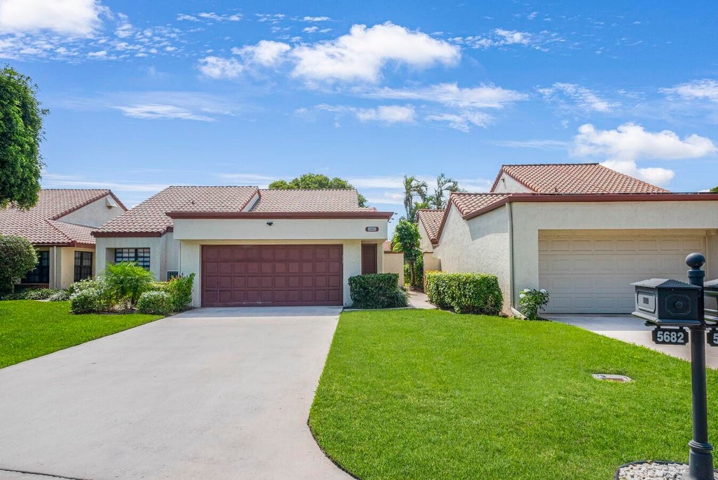 Create your own tropical escape in this delightful 2-bedroom, 2-bath home. Entertain guests with ease in the stylish living room, elegant dining area, and expansive enclosed patio. The dream kitchen features classic white cabinets with pull-out drawers, Quartz countertops, a tiled backsplash, stainless steel appliances, a pantry with pull-outs, a breakfast nook, and a snack bar. The spacious primary retreat offers a slider to the patio, a custom closet, a soaking tub, and a walk-in shower. Additional highlights include a charming courtyard entrance, newer A/C and hot water heater, neutral flooring, smooth walls, LED high hat lighting, and plenty of natural light. Relax on the large, enclosed patio with A/C and enjoy views of the golf course.