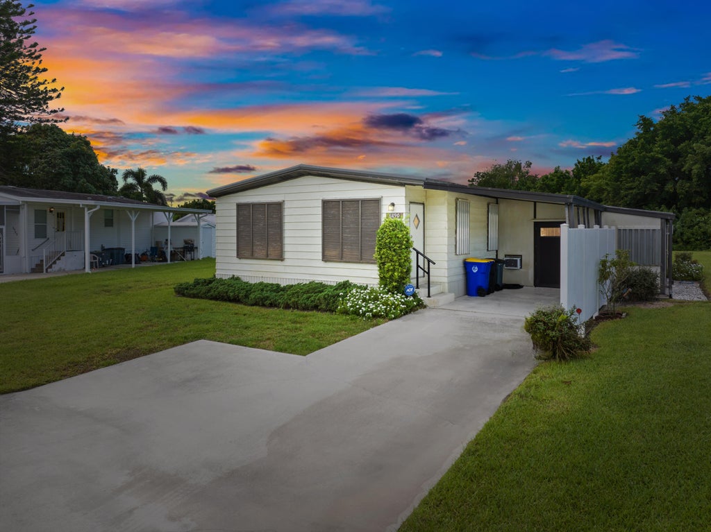 Welcome to this well-maintained 2-bedroom, 2-bathroom double-wide mobile home located in the desirable 55+ community of Cambridge at Heritage Ridge. While it may have a vintage feel, this home has great bones and sits on a lovely lot that backs up to serene trees for added privacy. Spacious layout with plenty of storage, including a utility room and two sheds. Land is owned. Have a boat or an RV? No problem! The active HOA offers amenities like a pool, clubhouse, shuffleboard, exercise room, and billiards room, with low fees and no strict pet restrictions. Ideally located just a few miles from Jupiter Island beaches, boat ramps, golf courses, shopping, restaurants, and entertainment. Experience a peaceful, laid-back lifestyle with everything you need right at your doorstep.