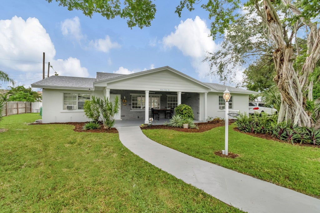 Charming 4 bedroom Home in Prime Location of East Delray, no HOA! Nestled on a large beautiful corner lot in the sought after neighborhood of Tropic Palms, this home features a new roof, an updated galley kitchen with new appliances, indoor laundry room, new light fixtures and ceiling fans and a new electrical panel. Home has recently been painted inside and out and is in great condition! Garage has been converted to a bedroom but can be easily converted back. Relax on the inviting front covered patio, perfect for enjoying morning coffee or evening breezes. With a current rental income of $5200/month, this property offers incredible income potential. SELLER WILL CONTRIBUTE TO HELP BUYER BUY DOWN RATE IF NEEDED!