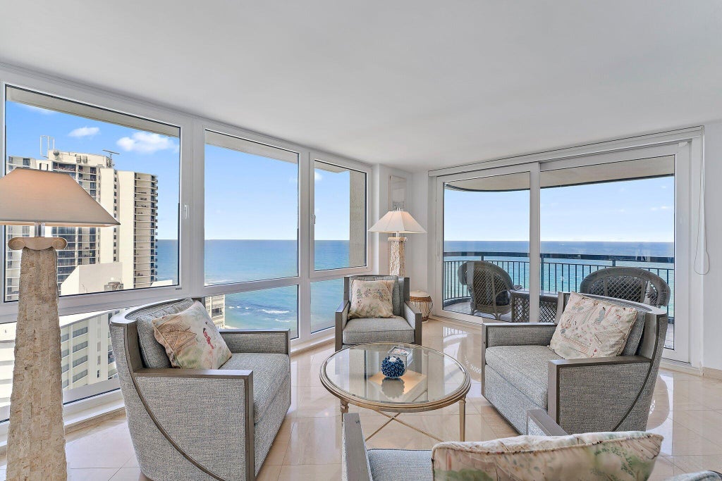 Enjoy amazing Ocean to Intracoastal views from Eastpointe II, a boutique luxury condo building on Singer Island with just 69 total units, and only 3 units per floor that share no common walls for the ultimate in privacy. This recently renovated ''J'' stack suite has views to the East, North, and West with floor to ceiling glass from new impact windows and doors that open to three balconies with 750 SF. Extra features include a bar area, in-suite laundry room, and AC storage space just outside your door. Building amenities include: 24/7 gated security, front desk conceirge service, pool, three tennis courts, fitness center, social room with bar and kitchen, under building parking with 40 guest spaces, game room, library, and manicured grounds with walking gardens.
