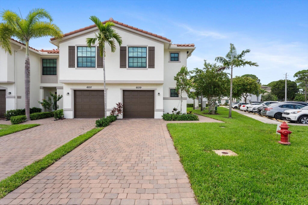 Fantastic Home with Waterview! Newer Construction in the Gated Arbor Parc Community with Low HOA! This spacious 3 Bed/2.5 Bath townhouse is one of the larger models and is located on a desirable corner lot, just steps away from the Clubhouse and Pool. It features a 1 Car Garage, Hurricane Windows, and upgraded ceiling fans.The open-concept first floor boasts high ceilings, tile floors, a welcoming foyer, and a convenient half bath. The stunning kitchen is equipped with beautiful cabinets, countertops, a large pantry with ample storage, and an island with seating--ideal for hosting guests or enjoying quick meals. The master bedroom includes two custom-built closets and a master bath with dual sinks and an upgraded glass shower door. The laundry room is conveniently located downstairs.