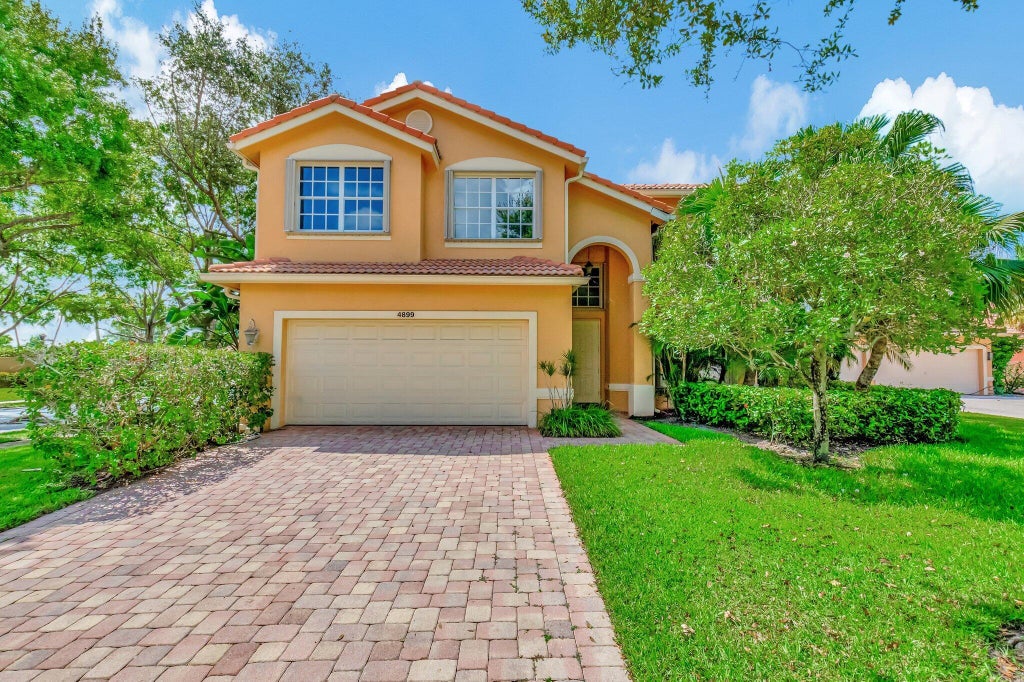 Spacious 2-story 3BR/2.5BA home in Cul de Sac with loft (convertible to 4th bedroom). Loft opens to a private balcony. All bedrooms are upstairs. Downstairs boasts elegant marble floors, a grand marble staircase, and a large family room. The kitchen features white cabinets, granite countertops, pull-out drawers, breakfast nook, and desk area. Expansive master suite with double-door entry, dual vanities, walk-in shower, and two walk-in closets. Additional storage under the stairs. Accordion shutters, paver driveway, 2-zone AC (2018 & 2022), water heater (2019), and laundry room with sink and cabinets. Large backyard with space for a pool, and two patios off the kitchen and dining room. Community features a clubhouse with a fitness center, pool, , hot tub, basketball court, playground