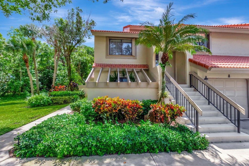 Charming three bedroom corner unit offers preserve and greenspace views. Freshly painted. Neutral tile floors throughout. Large screened and tiled balcony offers tranquil views adding outdoor living space to relax and entertain. Spacious primary suite with vaulted ceilings, large walk-in closet, dual sink vanity and balcony access. Laundry room with full size W/D. AC 2023. Private 1CG. Best Town Center location. Coach Houses offers two heated pools, sidewalks to city tennis club, Publix, Walgreens, shops & restaurants. Close to I95, Turnpike, A rated schools & short drive to Boca's best beaches. Fee includes cable, water, roof, insurance & landscaping. $120 yearly master association fee to Via Verde & $750 one time capital contribution. One pet up to 30 pounds. No lease first year.