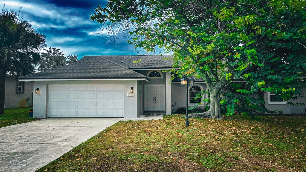 Rent this refreshed ranch-style 3/2/2 home in Jensen Park Estates! Enjoy breathtaking lake views and scenic landscapes in your backyard. Recently repainted inside and out, this home boasts renewed plumbing hose connections, new vinyl wood flooring in one bedroom, and new toilets installed in 2024. The split floorplan offers wide open living areas with tile and laminate flooring for easy cleaning. The kitchen and family room overlook a screened-in patio opening to a lush backyard, perfect for relaxation. Vaulted ceilings enhance the spacious feel, and the master bedroom has a huge walk-in closet. Ample space for parking trucks/boats. Close to beaches, top schools, and shopping. Renters insurance required.