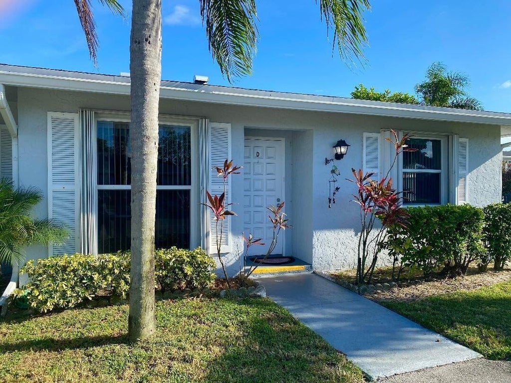 PINES OF DELRAY WEST. Don't miss seeing this EXCEPTIONAL fully renovated 2 bedroom/2 bath FULLY FURNISHED CORNER VILLA. Inside you'll find all textured (''knock-down'') walls and ceilings, all tile flooring and fully updated 17 foot long eat-in kitchen and bathrooms - including the master dressing area. There's also a ''southern exposure'' 160 square foot tiled patio with 5 sets of 55'' tall slider windows and Wrol-Ups. The kitchen boasts 39'' tall cabinetry, granite countertops, attached breakfast island with full size washer & dryer hidden beneath and all stainless steel appliances. Other features include all PGT windows with accordion shutters, a 2018 2.5 ton/14 seer AC system, a 2022 30-gallon water heater, 4 remote control paddle fans.