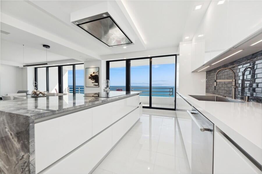 S-1503 is the height of oceanfront luxury. Newly renovated in 2022, this 2 bedroom, 2.5 bath residence features every upgrade imaginable; the contemporary kitchen features state of the art appliances including a steam oven, convection cooktop island w/ extra storage, seating & waterfall edge. The living area includes a custom wet bar w/ a stunning wine display, perfect for entertaining. All of the bathrooms have fabulous finishes such as a heated towel bar. The Creston system conveniently controls lights, audio, video & thermostat in the unit. Raised ceilings, open spaces, sparkling porcelain, designer hardware & impact glass are just some of the amenities in this residence. This 15th floor unit offers panoramic ocean vistas to the east & fabulous city views of Boca Raton to the west.