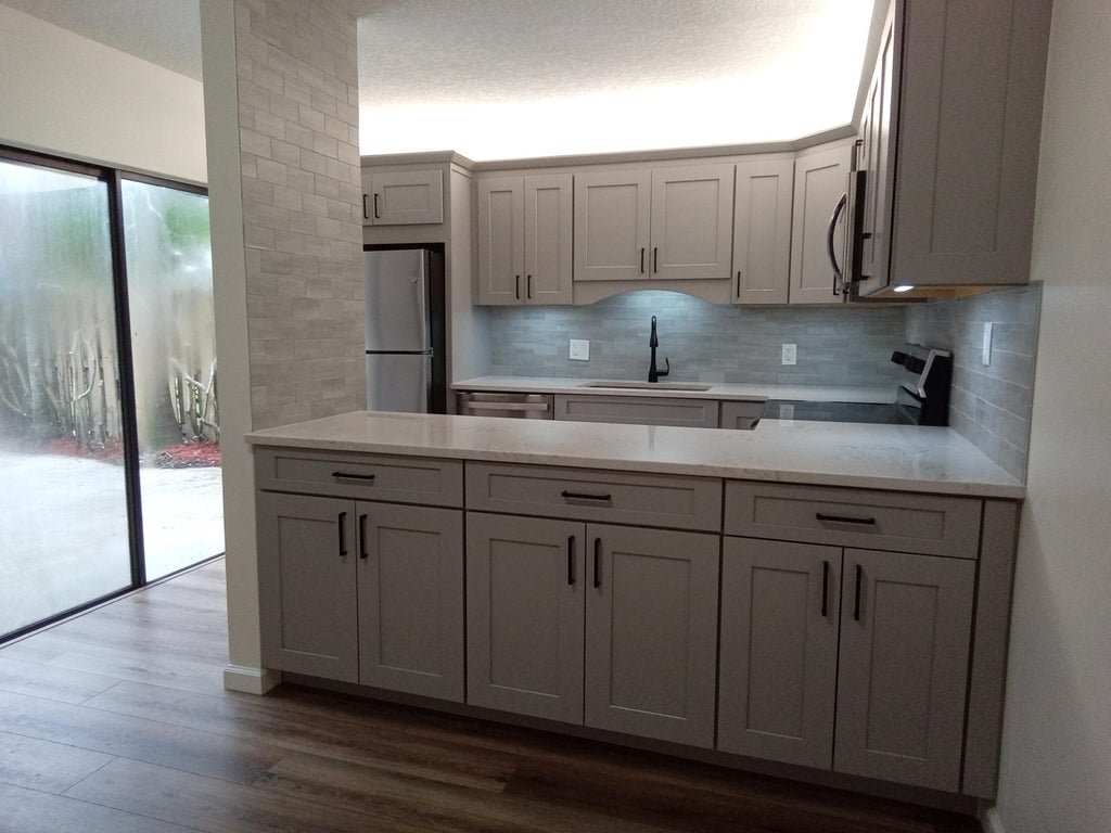 Come see this updated 2 bedroom, 2.5 bathroom townhouse in the heart of palm beach gardens. Close to shopping, restaurants , Palm Beach Gardens Hospital, beaches, PBI Airport and all major roads. The newly renovated open kitchen features stainless steel appliances, upgraded cabinetry, quartz counter tops, and a breakfast bar. Neutral luxury vinyl planks have been installed on the 1st floor. The bathrooms all have newer vanities. The master bedroom has a large walk in closet. Sandalwood Estates offers the best of both worlds. Close to everything yet peaceful and quiet. The community has plenty of walking paths, a basketball court, and a playground. New roof installed in 2021. The HOA fee includes maintenance of the common areas and exterior building insurance.