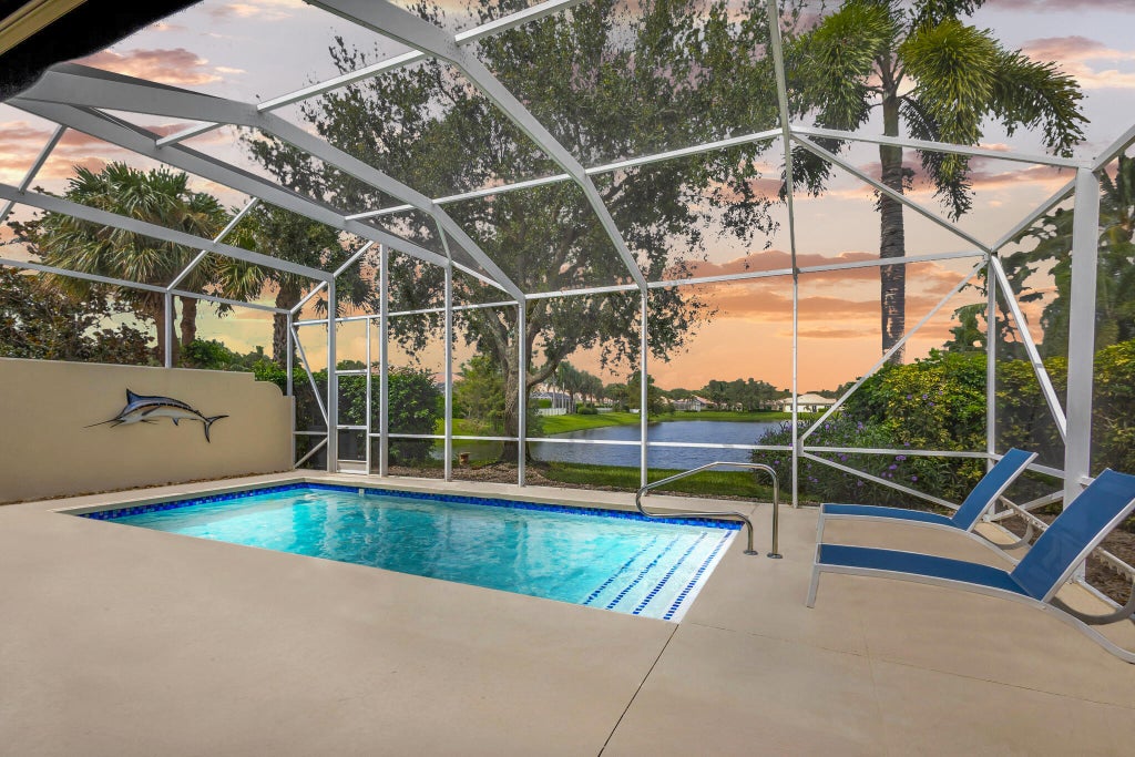 Experience a lifestyle of absolute luxury and tranquility in this exceptionally renovated DiVosta built MASTERPIECE! Every material choice selected is of the finest quality, and every design detail was meticulously considered for a modern coastal chic finish throughout this legendary floorplan, The Oakmont. The ultra-private screened-in salt pool, also accessible from the oversized master suite, features one of the longest and most sprawling West facing long lake views in The Isles PBG, showcasing spectacular SoFlo sunsets complimented with vibrant LED pool lights lending to an exotic tropical ambiance right in your backyard. The clubhouse amenities and a location are second-to-none with high-end retail and cuisine at your fingertips. This is the epitome of South Florida living!