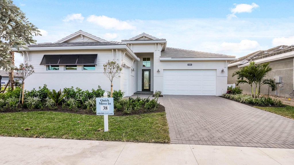 **New Construction - Move In Ready* This brand-new Sydney floorplan built by Kolter Homes is located within the gated community of L'Ambiance at Avenir. This home includes 3 bedrooms 3 1/2 bathrooms, and a 3-car garage. The home also includes a 16' wide by 10' sliding impact glass door leading to the lanai, spray foam insulation, and an extended owner's bathroom shower. There is a gas connection for a future pool heater, as well as gas, electric and water connections for a future outdoor summer kitchen, and the backyard offers ample room to build a custom pool. The kitchen includes a quartz island countertop with matching quartz backsplash and second tier upper cabinets.