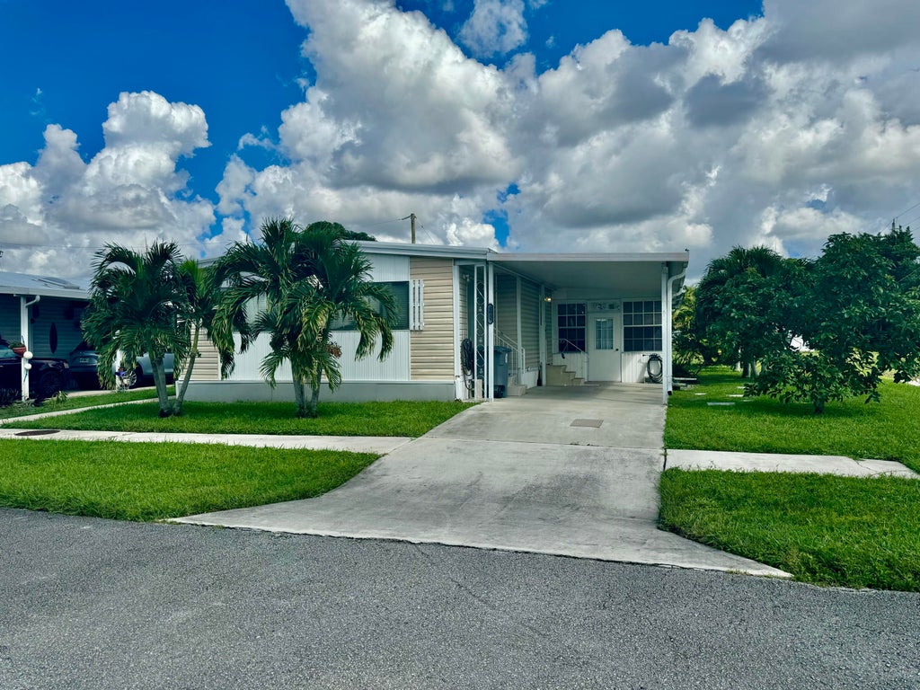 Yes, you own the deeded +/-50x85 lot, included in this price, with a mobile home on a corner lot and canal waterfront. Comes partially furnished, very clean, and in move-in-ready condition. The large shed with double French doors is perfect for storing your golf cart. The beautifully landscaped yard features palm, olive, banana, and fig trees, all easy to maintain. This spacious home includes a Florida room, sunroom, carport, and shed. Located in Tropical Breeze, a 55+ community with a low HOA of $350 quarterly. There is NO special assessments are planned or coming here. Call now--this is a steal in Palm Beach County!