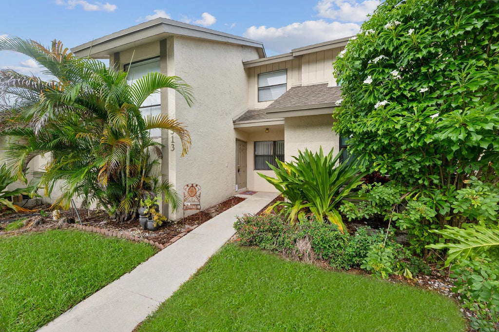 Charming 3 Bed/2 Bath Townhouse. Versatile Layout includes a den that can serve as a third bedroom/ office. Private Screened-In Patio to enjoy outdoor living in your own private space. Vaulted Ceiling that create an airy, open feel throughout the home. The Primary Bedroom is on the First Floor for easy living with a guest Half Bathroom for visitors. Modern Flooring includes tile on the main floor and new laminate on the stairs and upstairs. The updated Kitchen features SS appliances, quartz countertops and fresh paint. Community Amenities are a non-manned Gate to Ensures safety and privacy. A Pool and Park which is perfect for relaxation and leisure activities. Prime Location within walking distance of top shopping and dining spots and Top-A Rated Schools.
