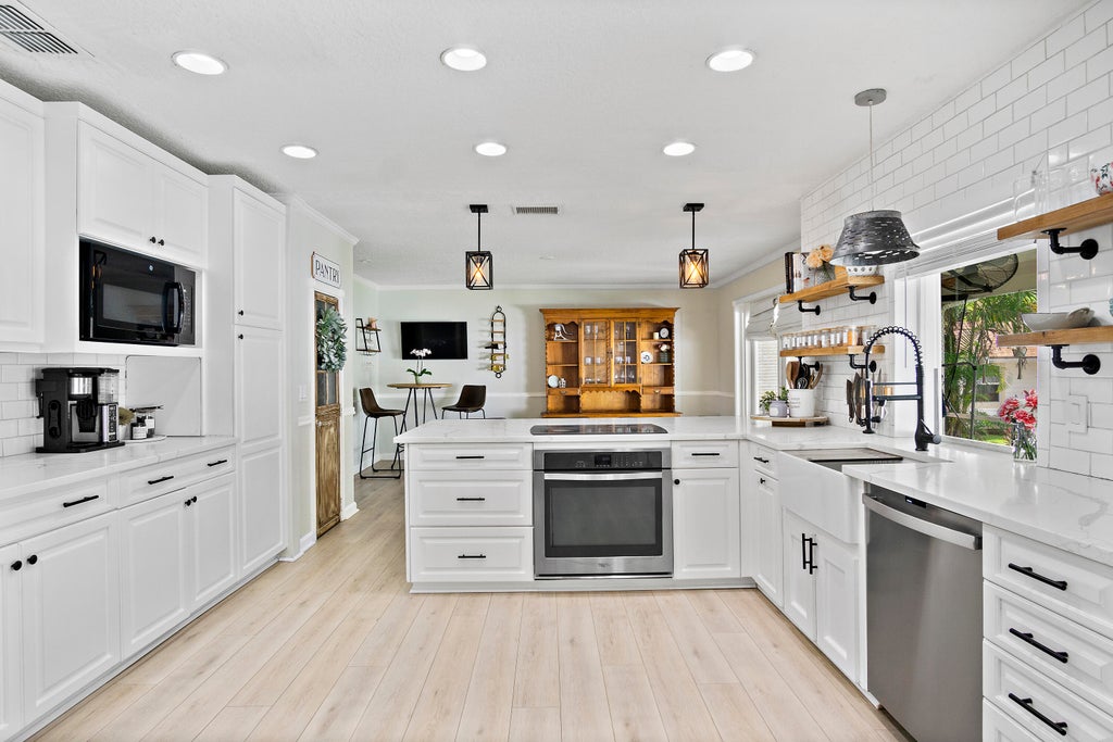 Located in the highly desirable area of Hobe sound's Gomez avenue, awaits your 1/2 Acre tropical oasis! This Beautiful five-bedroom, three-bathroom non HOA pool home has a screened in patio, spacious fenced in yard, lush landscaping and extra parking for RV/Boat storage, located less than 2 miles from pristine beaches, shops, and restaurants. This spacious home boasts a BRAND NEW ROOF, fire place and an elegant gourmet kitchen, complete with top-of-the-line appliances, custom cabinetry, and a built in bar, perfect for entertaining. The floor plan flows seamlessly from the kitchen to the living spaces, overlooking a stunning outdoor pool area. With ample bedrooms and bathrooms, this home offers comfort and luxury in a prime location. Ideal for families or those seeking a coastal retreat!