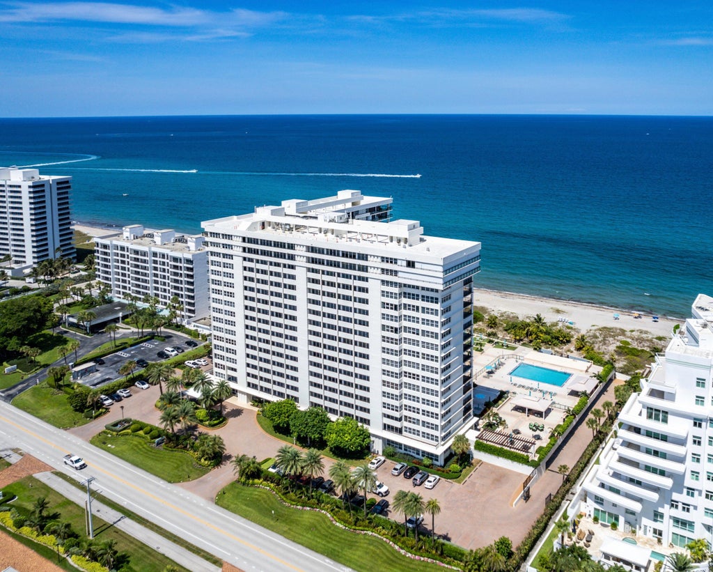 Welcome to your beachfront haven of pure coastal bliss. HEALTHY RESERVES AND STUDIES COMPLETE. When you step inside, you will be immediately greeted by the expansive ocean vistas that are sure to leave you breathless! The airy, light-filled open floor plan of this beautiful recently renovated condo is flooded with natural light with floor-to-ceiling impact windows. The relaxed layout invites you to entertain with ease, while the chef's kitchen with quartz countertops and stainless-steel appliances, beckons for culinary adventures. Laundry room with quartz countertop and upper and lower cabinetry, provide ample room for all your storage needs. HVAC replaced in 2022. Spacious Primary bedroom with en-suite bath and His & Hers closets. Guests will find comfort in their own inviting space.