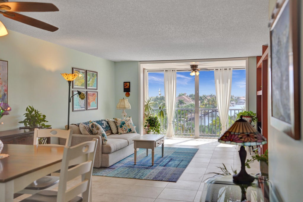 PRIME LOCATION & WATERVIEW IN DELRAY BEACH. This spectacular water view greets you the moment you open the door. The east-facing patio w solar shades offers stunning vistas; the bright living area boasts an open floor plan with 24'' ceramic tiles throughout; a custom wall unit w granite counter,French doors to the primary bedroom; the ensuite features a modern vessel sink w/marble vanity; a new queen-sized Murphy bed & walk-in closet in the 2nd bedroom; 42''cabinets & granite in kitchen; full size W/D.This waterfront community,offers 3 saltwater pools, a marina w docks for 20'-45' boats annual rental avail; clubhouse,fitness ctr, Phase 1 of the Milestone Inspection has been completed & this building( # 17) which this unit is in passed the inspection & does NOT require a Phase 2 Inspection