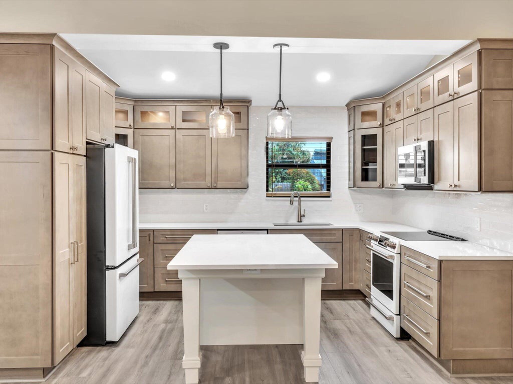 Welcome to your dream home in the highly sought-after city of Delray Beach, with no HOA dues. This beautifully renovated gem features a new roof, fresh paint inside and out, and a custom-built staircase. Enjoy luxury vinyl flooring, new solid wood doors, and faux wood blinds. Hurricane windows, sliders, and a privacy glass front door offer security and peace of mind. The chef's kitchen boasts new cabinets, quartz countertops, GE Cafe appliances, a beverage fridge, and stylish lighting. Bathrooms are updated with new vanities, faucets, and shower fixtures. Every room has new lighting, and the home includes new tile on the porch and patio, new sod, an underground sprinkler system, professional landscaping, a new electrical panel, and attic insulation. Experience the best of Delray Beach