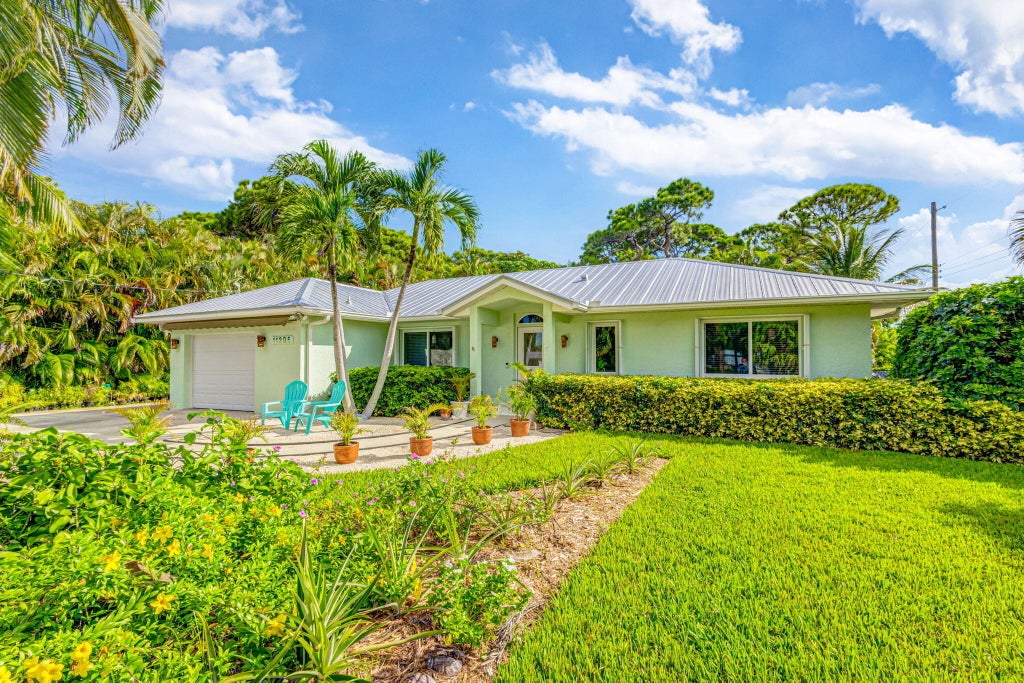 Discover your Key West-style oasis on Gomez Ave in Hobe Sound, Florida! Open Concept Living, Beautiful Views of the Pool and Patio, Mature Landscaping, Ample Side Parking for RV or Boat. This charming CBS home boasts a host of major updates, including a new metal roof (2018), impact windows (2024), and a stunning pool with a heater, pump, and salt system (2015, updated in 2022). Additional highlights include a new HVAC system (2023), duct replacement and cleaning (2024), a new front door (2021), hurricane garage door (2018), and hurricane shutters (2022). The water heater was updated in 2016. Key Features, 2 Bedrooms, 2 Bathrooms, 1-Car Garage with workshop What Hobe Sound has to offer: Gomez Ave is a charming residential street known for its peaceful atmosphere and proximity t