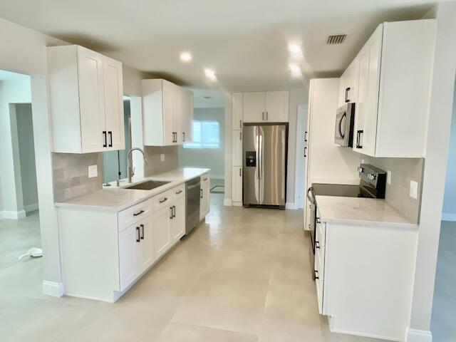 Active 55 plus community in the heart of Boynton Beach. Three clubhouses with pool and 18 hole par 3 golf course. Newly renovated Large 2/2/1 with office. Split floor plan. All new flooring, hurricane window, impact garage door, porcelain floors, stainless steel appliance, kitchen cabinets, quartz counter tops, new bathrooms, freshly painted interior. Newer AC unit.