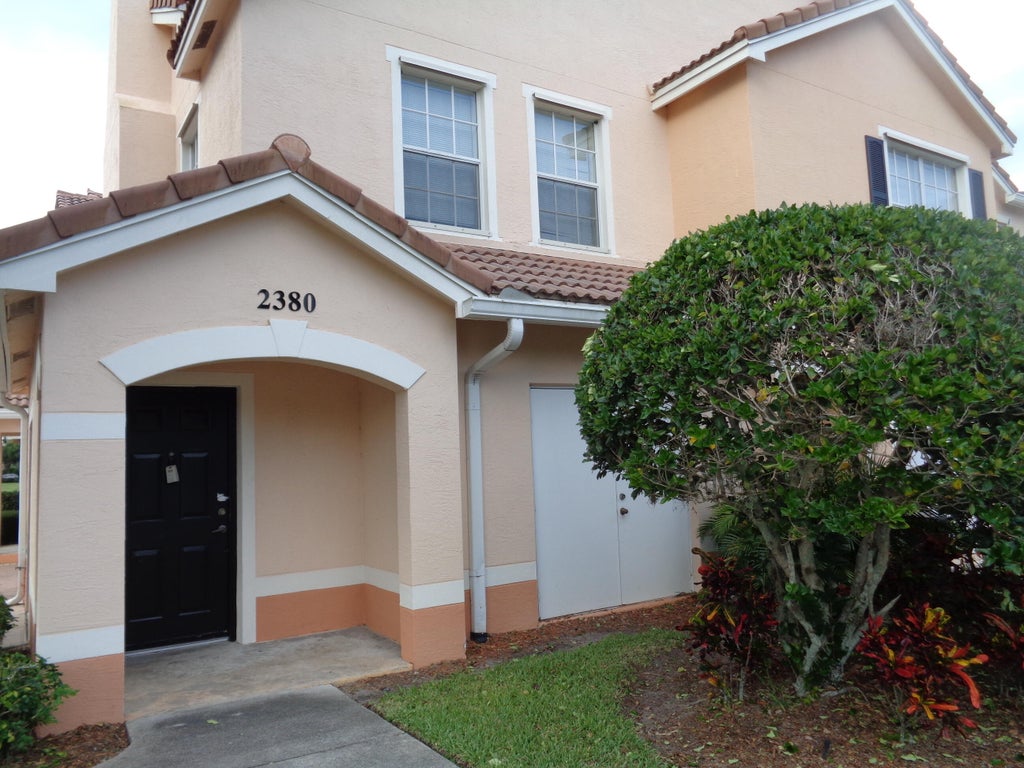Annual unfurnished rental. Available 12/10/2024. Split and open floor plan, cathedral ceilings, living, dining kitchen combo. 2 bedrooms, 2 baths condo with 1 car garage on 2nd floor, screened balcony. Hard wood flooring. Desirable Palm Estates Community offers large swimming pool, gated entry, playground, clubhouse and fitness center. Great Location!!! Convenient Central Vero Beach location allows access to sandy beaches, major shopping, dining, theater, mall, movie theaters, city marina, art museum and more. Currently occupied, call agent to set an appointment for previewing it. Sorry, no pets allowed.