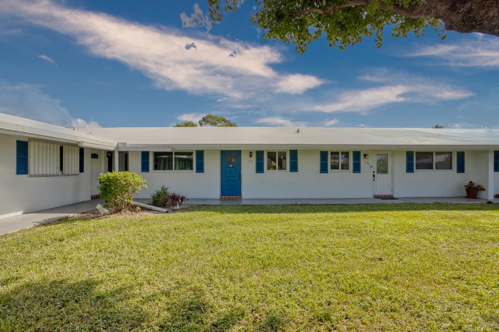 ESTATE SALE PROPERTY READY FOR IMEDIATE OCCUPANCY VACANT NEW PAINT, NEW CARPET, NEW A/C NEW WINDOWS,CLOSE TO SHOPPING AND BEACHES, GREAT BACK PATIO ENCLOSED VIEW OF PUTTING GREEN AND POND, PATIO ON EAST SIDE WONDERFUL FOR SITTING IN AFTERNOON , DEVELOPMENT IS FULL OF ACTIVITIES, HAS LAUNDRY ROOM AND STORAGE IN THE BUILDING, HURRICANE IMPACT WINDOWS REFRIGERATOR been replaced, NEW ELECTRIC UPGRADED PANEL,PATIO INCLOSED