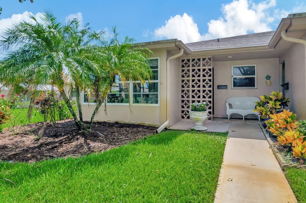 FABULOUS BRIGHT END UNIT, 2 BED/2 BATH UNIT WITH FRONT CONVERTIBLE FLORIDA ROOM/3RD BEDROOM. NEWER HURRICANE IMPACT WINDOWS. A/C UPDATED 07/2024. NEUTRAL TILES ON THE DIAGONAL THROUGHOUT THE UNIT EXCEPT IN THE KITCHEN WHICH HAS WOOD FLOORS & CABINETS. SEPARATE DINING AREA. PRIMARY BATHROOM HAS UPDATED GLASS SHOWER BARN DOOR, TILED WALLS, UPDATED FIXTURES & AN IN-UNIT WASERH/DRYER. ADDITIONAL CLOSETS FOR MORE STORAGE. USE THE PATIO IN BACK TO RELAX AND ENJOY THE BEAUTIFUL FLORIDA SUNSHINE. ENJOY THE CLUBHOUSE WITH POOL, TENNIS/PICKLEBALL COURT AND SHUFFLEBOARD.EASY TO SHOW. ALL MEASUREMENTS AND INFORMATION ARE DEEMED ACCURATE & SHOULD BE INDEPENDENTLY VERIFIED.