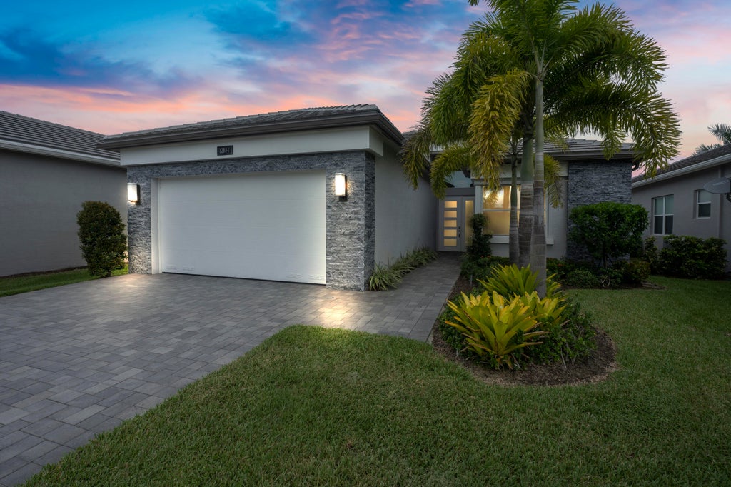 This beautiful light-filled contemporary home offers the perfect balance of luxury & easy living! The premium stunning lake & fountain views never disappoint & the spacious open concept layout creates a wonderful living flow! With more than $165k of smart upgrades (list in documents), after market Italian wood-look porcelain tile, complete impact windows & doors, top level quartz countertops, 2 waterfalls, high end cabinetry, large eat-in kitchen & grand height coffered ceilings - this home is a winner!! Add in gas throughout, oversized driveway & walkway, elegant stack stone elevation detail, and the special feel of this welcoming home just keeps coming! 2 bedrooms plus versatile den/3rd bedroom. 2 baths. Primary has 2 walk in closets. Built in 2022. Don't miss out! Valencia Sound is a