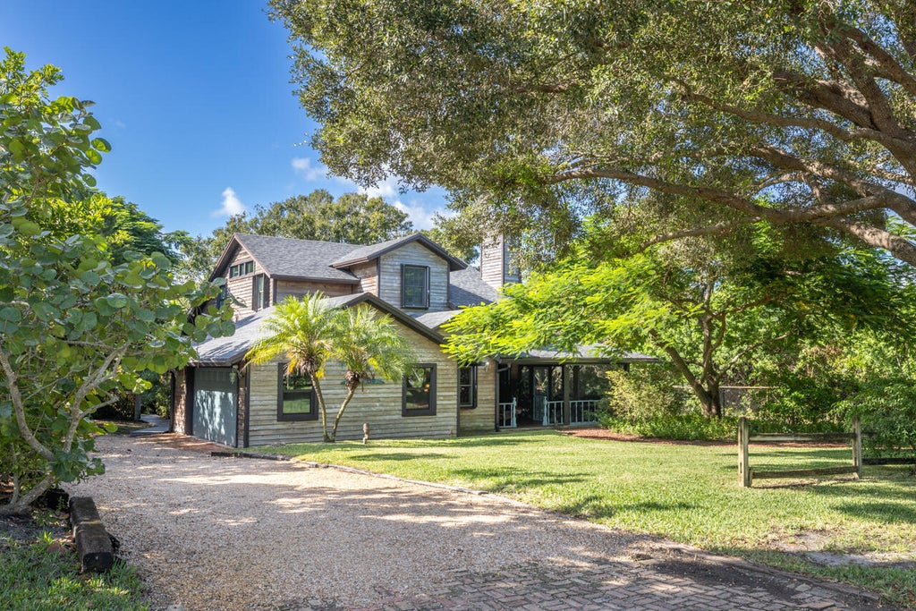 RUSTIC, CHARMING 2/2+Den Cedar Clapboard siding. NO HOA! 2x6 Framing. 12x35 Pool with AquaMatic ASTM certified safety cover. Hot Tub for 6. 1/2 acre. Great for entertaining-spacious kitchen Dining Room. Gas for Range, living rm fireplace, & hot water heater & DRYER. Gas tank is leased. REAL WOOD FLOORING except tile in bathrooms. 10 ft ceilings & crown molding. One bedrm, den & bath located down. 723 SQ FT Master Suite Is located on the 2nd floor. Updated bath has a Jacuzzi tub and separate shower & two vanities. Master Bedroom fireplace is gas. 400 sq ft screened patio. Large Deck the rear of the home. Gardener's Paradise. Peaceful setting. 2021 Roof, 2022 impact & accordion shutters, 2020 A/C. 2021 drainfield Garage is enclosed. It can easily be returned to a garage. No sign on property