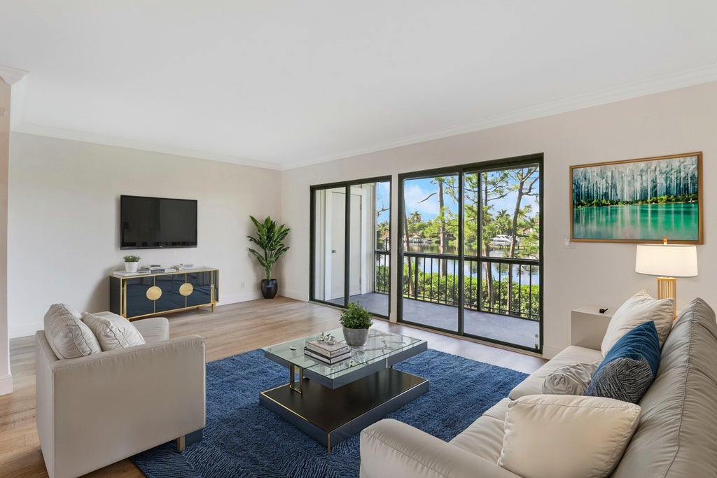 Welcome to your dream home, where breathtaking views of the serene Loxahatchee River greet you at every turn. This immaculate, move-in-ready unit is bathed in natural light, creating a harmonious blend of relaxation and luxury. Complimented by a renovated kitchen featuring quartz countertops, shaker cabinets, and plethora of storage including a large pantry with multiple pull-out drawers. Step outside to enjoy two expansive balconies--one off the main living area and the other off the primary bedroom--both offering coveted water views that rival those of multi-million dollar homes just across the river. Riverbend is not just a home; it's a lifestyle.