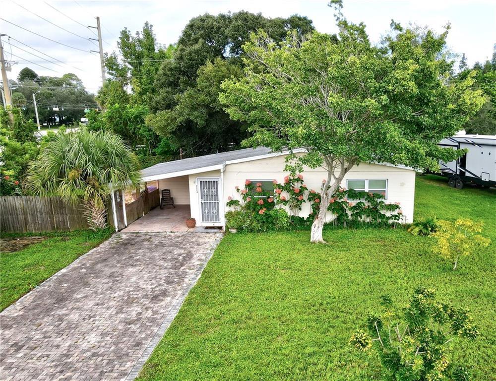 An affordable opportunity! CASH ONLY, AS-IS. No central AC. A 2 bed, 1 bath classic + private fenced backyard. The long brick paver driveway to the carport & wide yard provide plenty of parking. The fenced backyard & side yard are also almost completely covered in brick pavers for low maintenance. Concrete block, 2018 roof could use sheathing repairs, 2018 windows, 2022 water heater, updated bathroom. Washer & dryer included. Small laundry room & larger 14'x10' storage room. Buyer could replace electric panel. Good floors. The location is on 27th Ave, but very private: only one neighbor. Wow!