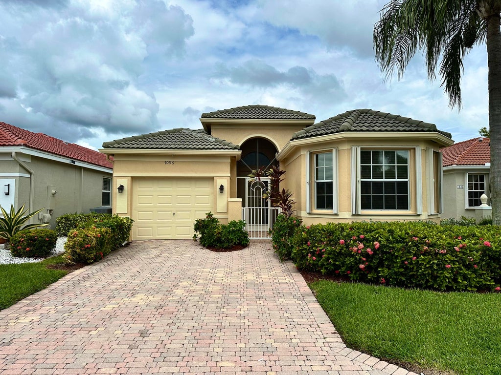Lovely two bedroom two bath single-family home with den in the beautiful active gated community of Vizcaya! Spacious & open floorplan with 1,936 sq feet of living area. Ceramic tile flooring throughout. One car garage. Eat-in kitchen with lots of counter space opens to the large great-room with soaring ceilings. Formal dining room. Great front-back split bedroom layout for maximum privacy inside. Vizcaya has a beautiful resort-style clubhouse with a well-equipped fitness center, ballroom, arts and crafts room, social room, and card rooms. And of course an Olympic-size swimming pool, tennis courts, and six brand new pickleball courts! Shows, lectures, art classes, social events - so many great activities!Convenient Publix stores with shopping plazas by each end of the community