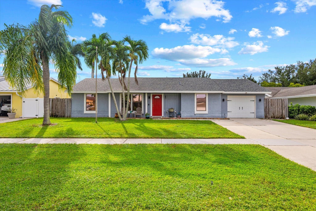 Discover your dream home in the heart of Boynton Beach's beautiful Le Chalet neighborhood! This captivating single-family home offers 3 bedrooms plus a flex room, 2 bathrooms, and an open floor plan perfect for modern living. Some key features include being zoned for fabulous A-rated schools, a location on a canal with an extra-large backyard and patio, and a grand kitchen with stainless steel appliances and plenty of countertop space. Recent upgrades include: new roof in 2018, luxury vinyl plank flooring approximately 5 years ago, and a new AC unit approximately 3 years ago. Enjoy stunning sunsets, serene canal views and plenty of space perfect for both indoor and outdoor entertaining or relaxing. This home is a true gem and a must see!