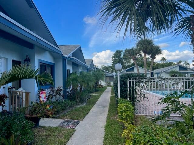 LOVELY CORNER 1 STORY VILLA, 2 BEDROOMS. 2 FULL BATHROOMS, FENCED IN PRIVATE BACKYARD. UPDATED KITCHEN WITH STAINLESS STEEL APPLIANCES. TILE IN LIVING AREAS, WASHER/DRYER, GREAT LOCATION IN EAST BOCA. JUST STEPS FROM THE HEATED COMMUNITY POOL, JUST LIKE HAVING YOUR OWN! VERY SMALL,INTIMATE COMMUNITY WITH ONLY 13 OTHER VILLAS! CLOSE TO SHOPPING AND THE BEACH! WATER IS INCLUDED IN THE RENT.SMALL PETS ARE OK.