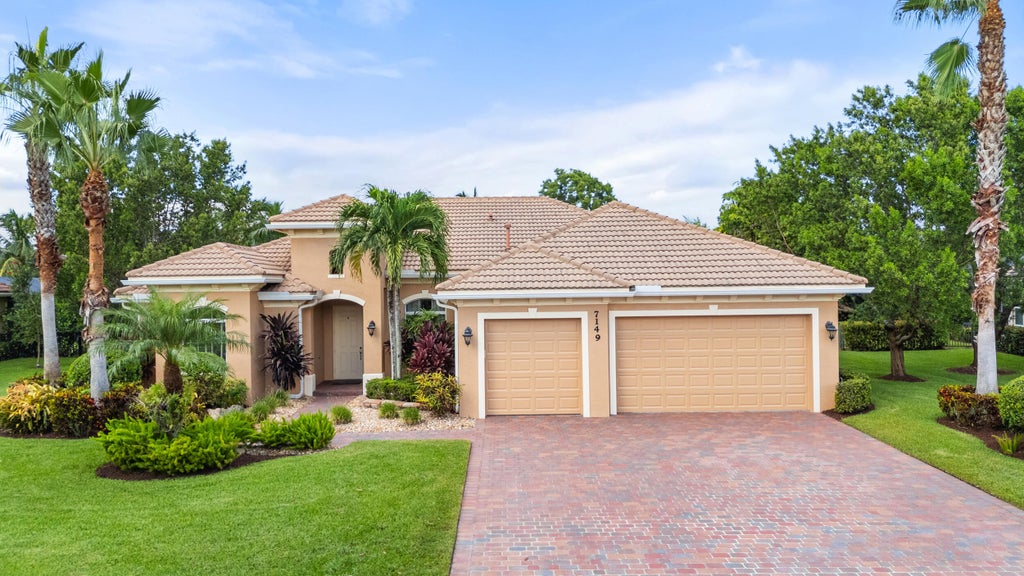 Welcome to the sought after Tres Belle gated community that borders the natural wetland preserves offering scenic serenity once inside. This Bimini model by Kolter Homes was built in 2014 on just under an acre of land with 4 Bedrooms, 3 Full Bathrooms, Den, and comes fully loaded with impact windows and doors to provide comfort and peace of mind. The large open kitchen includes granite countertops, Stainless Steel GE appliances, and a 4-burner gas cooktop. The spacious Main Suite features two custom walk-in closets, dual vanities, a stand-alone soaking tub, and walk-in shower. Outside, the backyard is generously sized with extensive tropical landscaping, palm trees and lush greenery creating a private tranquil escape.