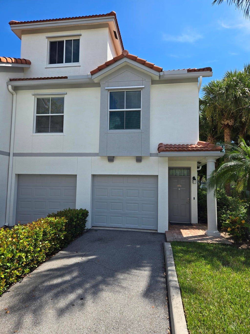 VERY DESIRABLE COMMUNITY in East Delray. End unit 2 Bedroom 2 bath three story condo with a garage and private driveway east of 95. NEW Carpet in both Bedrooms, Tile and laminate otherwise. Granite Countertops, Wood Cabinets in kitchen with Pantry. Balcony overlooking greenspace. Dog friendly community. Close to so much that makes East Delray a great place to live. The community boasts security gates, pool, tennis, volleyball, basketball, car wash, gym, playground, and open space. Built in 2002. Home has impact windows.