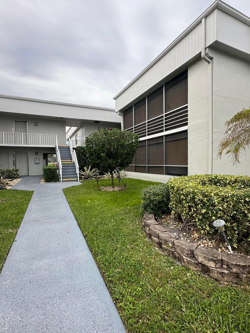 Spend the season at this spacious 1 bedroom 1.5 bath ground floor end unit. Kitchen has new quartz counter tops, white cabinets and stainless steel appliances and enclosed balcony, washer and dryer in unit. Close to bus pickup and clubhouse offering pool, pickleball, golf, restaurant and all the amenities 55+ Adult community. Easy access to Downtown Delray Beach, restaurants, shopping and turnpike
