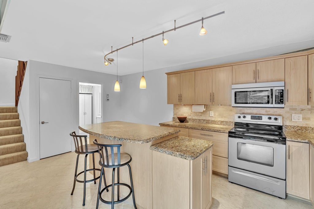 Charming move in ready 2 bed, 2.5 bath townhome just minutes to the beach and the vibrant nightlife of Downtown Atlantic Avenue! Light and bright with spacious eat-in kitchen featuring center cook island, stainless steel appliances, granite, track and under counter lighting. Full size stack washer and dryer and convenient powder room on the first floor. Courtyard style patio is ideal for barbecues and easy entertaining! Investor friendly - can rent immediately after purchase! All ages and up to 2 pets permitted. Full accordion shutters for peace of mind. A perfect full time or vacation home complete with a community pool, clubhouse, and tennis!