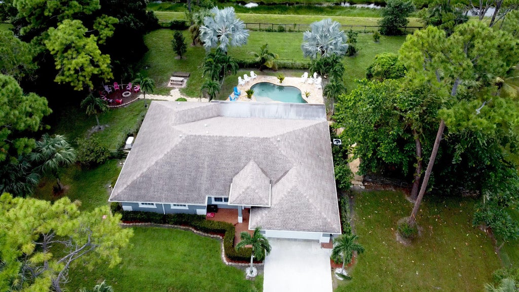 6888 150th Place N., Palm Beach Gardens, FL is a beautifully updated 4-bedroom, 2-bathroom pool home on a spacious 1.15-acre lot, 5 lots east of 69th Drive (main access road). The home features significant upgrades, including a new roof, dual AC system, and a whole-home Generac backup generator, all installed in 2020. The thoughtfully designed interior provides ample space and comfort, while the large outdoor area invites you to relax by the sparkling, salt water, heated pool with custom Turkish marble pool deck or entertain guests in the screened lanai in a peaceful, private setting. Easy access to the shopping, dining, and entertainment options of Palm Beach Gardens. This property offers everything you need for luxury living in a serene environment