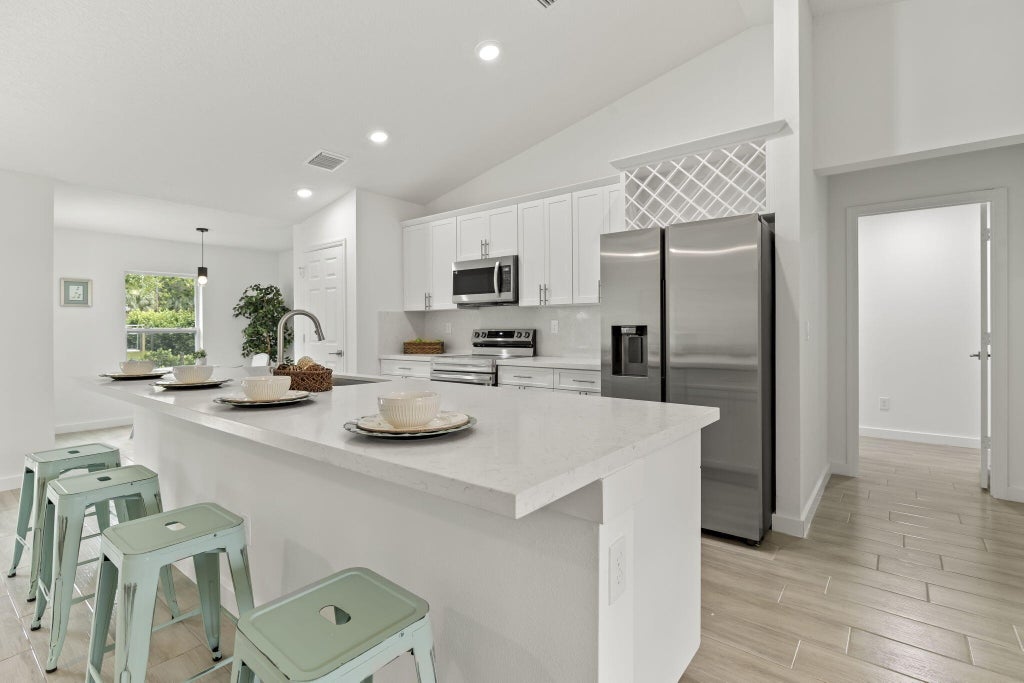 Best Value! New Construction Vero Lake Estates 1839 SQ FT. Impact windows. Upgrades! Quartz countertops. Wood Look Porcelain Floor Tile. Samsung Appliance Suite and Samsung Full size Washer & Dryer. Custom CBS house 3 beds, 2 baths 2 car garage split floor plan. Recessed lighting galore. Water Softener installed. Flat backyard ready for fence or pool. NON HOA community. Pets, RV, Boats, Toys allowed. Central location to I-95, Sebastian Riverfront and restaurants. Atlantic Coast Beaches. Publix 5 mins. Bus routes close. Builder warranty conveys and appliance warranty.
