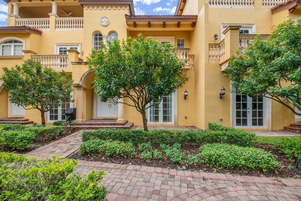 Welcome to this stunning 3-bedroom, 2.5-bath townhouse in Tuscany Village. As you enter through the elegant double doors, you'll be greeted by a raised foyer that leads to a spacious living-dining area featuring coffered ceilings and abundant natural light from impact windows. The French doors open to a private patio, perfect for outdoor relaxation. The large dream kitchen boasts granite countertops, a wall oven, cooktop, stainless steel appliances, and a convenient snack bar with a cozy breakfast nook. The primary suite is a true retreat, showcasing a coffered ceiling, private balcony access, a sitting area, dual closets, and a luxurious ensuite bath with a double sink, jetted tub, and walk-in shower.