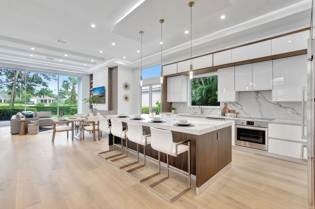 Fabulous totally re-designed and updated home with 3 bedrooms and 3 baths (all ensuite),plus office . Enter through double glass doors into a spacious foyer which opens to a large ''Great Room''. The kitchen features an oversized center island, abundant storage, all new stainless steel appliances, microwave drawer and quartzite counters. The family room has a custom built wall unit with electric fireplace and 12 ft. impact glass sliders which lead to an extended patio deck with fabulous golf course views. The spacious master bedroom has a sitting area and large fitted closets. The master bath features new cabinetry, dual sinks, separate shower and tub. Special features include all skim-coated walls and ceilings, new LED lighting throughout, and