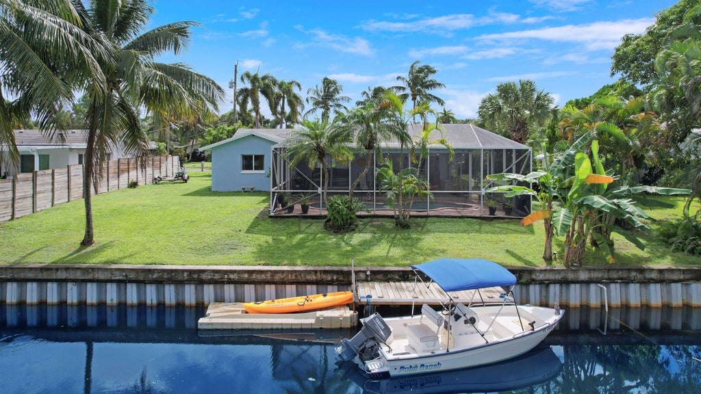 Nestled in the sought-after Treasure Island community, this stunning 2-bedroom, 2-bathroom waterfront home blends luxury and tranquility. Step inside to an abundance of natural light and a spacious family room that flows seamlessly into the open kitchen and dining area, both with scenic views of the patio and pool. The home features newer appliances, AC, water heater, all impact windows and doors, and a new roof for peace of mind. Outside, enjoy your private screened-in oasis with a pool, spa, and direct access to a freshwater canal leading to Lakes Osborne, Ida, and Eden. Furniture and boat are negotiable. With shopping, dining, and the beach just 10 minutes away, this home is a hidden gem!