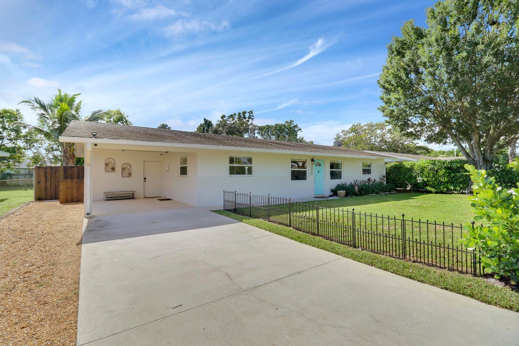 Looking for a completely updated move-in ready home with no HOA in the heart of Stuart this is it! This 3 bedroom 2 bath has split floor plan with tile flooring throughout home with new premium carpeting just installed in master. The updated kitchen features newer stainless steel appliances, 42'' solid wood cabinets with crown finishes & granite counters with breakfast bar. Step outside to your massive covered screen patio to enjoy your fully fenced tropical oasis. The lush landscaping that surrounds the property gives you so much privacy & makes you want to always be outside. The home features newer impact windows & slider, brand new AC & ducts, whole house water filtration, new electric panel, newer appliances, exterior cameras, weather station, flag pole, new attic insulation & more!