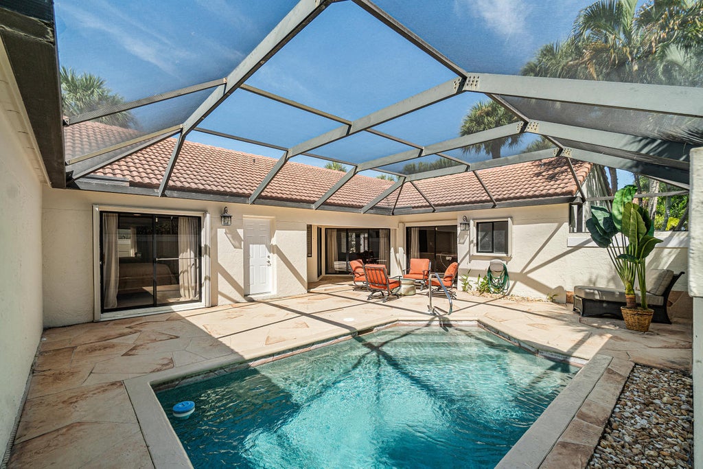 AVAILABLE FOR ANNUAL RENTAL, FURNISHED OR UNFURNISHED - Are you looking for a totally renovated, turn-key rental? You've found it! Best location - short walk or bike ride to the beach, shops, restaurants, Loggerhead Park and the Juno Beach Pier. Open concept living room greets w/ tons of natural light. Kitchen is incredible w/ Espresso shaker-style cabinetry, custom backsplash & marble countertops. Coastal style laminate flooring throughout living areas and master. Newer carpet in both secondary bedrooms. Secondary bath is also a cabana bath. Master is large w/ vaulted ceilings and large walk-in closet. En-suite master bath has been updated w/ large vanity and walk-in shower w/ frameless enclosure. Triple sliders open to the lanai and sparkling private pool. Accordian hurricane shutters.