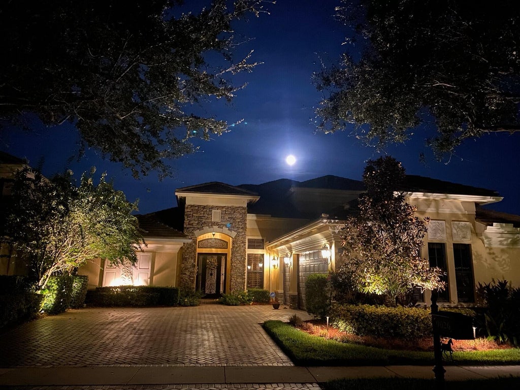 Magnificent pool home with 5 br/4 ba plus loft & 3-car garage on large private lot overlooking preserve. No backyard neighbors. Marble flooring, crown molding, plantation shutters & custom blinds, soaring ceilings with custom detailing. Impact windows & doors. Master suite downstairs overlooks pool/paddock area, 2 closets with built-ins, double trey ceiling, separate shower with floor to ceiling tile, beautiful tub, quartz counters. Downstairs is 3-way split, great for guests. Gourmet Kitchen has quartz counters & new backsplash, newer appliances. Formal dining room, family room with custom stone wall with quartz counter & dual wine cabinets. Upstairs 2 bedrooms plus loft. Exterior painted 2023. Both A/C's replaced 2016 & 2019. Hot water heater 2019. Whole home generator