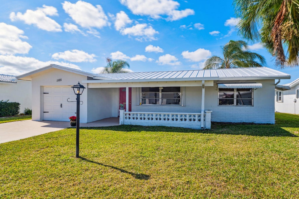 Beautiful Edgewood 2Br/2Ba home with FullFlorida room. BRAND NEW METAL ROOF 2024. Front Porch has insulated roof.Home faces East for those gulfstream breezes. Accordion Shutter on Living room window. Tile thru out. Kitchen remodeled with extra cabinetry and granite countertops. Stainless steel appliances. Both baths have been updated. Double concrete drive. A/C, electrical panel, garage door and hot water heater all replaced. . This home is vacant for quick close. Ideally located minutes to ocean beaches, I95 and all major shopping. Active community with 3 clubhouses, 3 heated pools, FREE 18 HOLE PAR 3 Golf course. Paid up Recreation Lease in Full.A Must See...Great home..Virtually Staged.