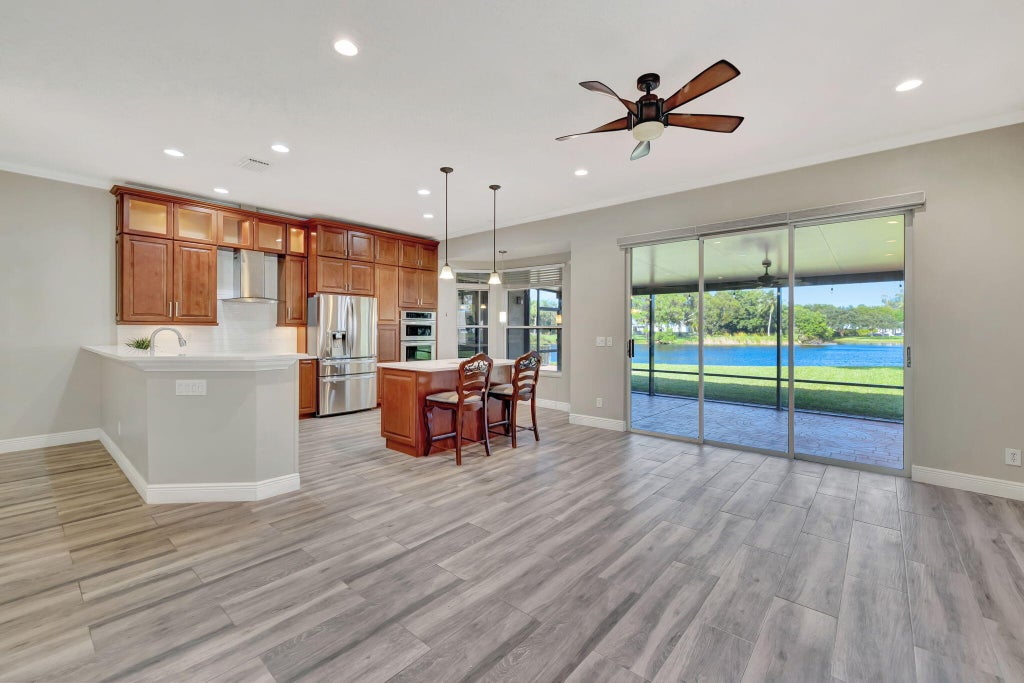 STUNNING LAKEFRONT 3/2/2 HOME-YOU WON'T WANT TO LEAVE THIS PIECE OF PARADISE. SPACIOUS REAR YARD OVERLOOKS WIDE LAKE VIEWS. LARGE COVERED/SCREENED PATIO-PERFECT FOR RELAXING OR ENTERTAINING! No rear neighbors. Open & Inviting Flr Plan, Chefs Kitchen w/ Wood Cabinets, Pull-out Drawers, Quartz Countertops, Subway Tile Backsplash, Island Serving Bar, LG S/S Appliances, Cook Top w/ Vented Hood, Wall Oven/Microwave, Breakfast Nook w/ Lakeview, Renovated Laundry Closet w/ Custom Cabinets/Sink, Newer Stacked LG Washer/Dryer, Spacious Primary Suite, Walk-in Closet, Renovated Primary Bath, Double Sink Vanity, Frameless Glass Shower Enclosure, Dual Showerheads, Custom Tilework, Modern Fixtures. Custom automated sliding door window treatments. Wood Plank Tile Flr., ROOF 2017. PATIO 6/2019