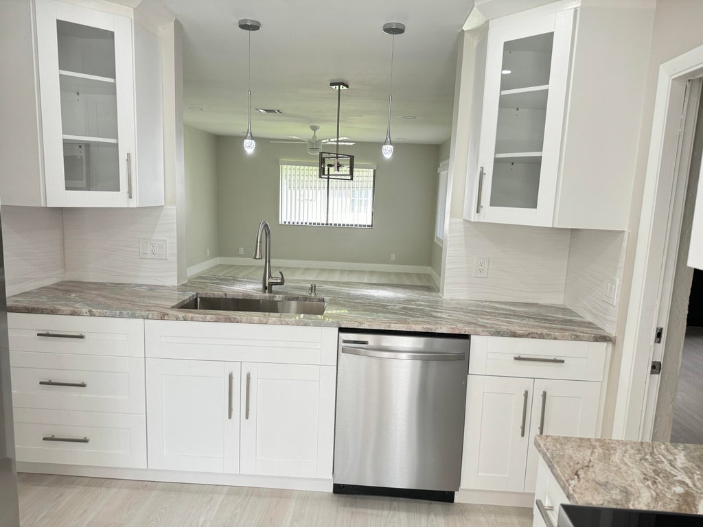 Large Renovated Villa solid concrete construction, 2 car driveway with Carport for covered parking on Private street. 2 Storage rms NEW ROOF, NEW A/C. HWH 2018, NEW WOOD SHAKER KITCHEN CABINETS AND GRANITE COUNTER TOPSNEW KITCHEN STAINLESS STEEL APPLIANCES, NEW W/D, NEW 100% WATERPROOF LAMINATE VINYL FLOORING, ALL NEW CLOSET DOORS, FRONT DOOR, NEW CURCUIT BREAKER BOX, PLUMBING, NEW BATHROOM STEP-IN SHOWERS,VANITIES WITH DRAWS FOR EASY STORAGE, ALL NEW LIGHTING, FANS, HIGH HATS, AND SWITCHES.Driveway way just painted. Kitchen and dining rm lead out to large Extra Family room goes out to screened in patio for barbequeing ect Approx 1 mile to publix,wallgreens,cvs, Active 55+ community bingo,shows. Service animals accepted. SELLER WILL PAY CAPITAL CONTRIBUTION FOR BUYER AT CLOSING